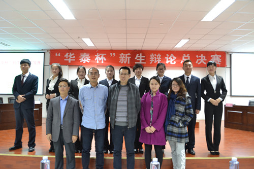 【永利集团304官网新闻中心讯 政法学院学办 物电记者站 】11月18日晚,政法学院“华泰杯”新生辩论赛总决赛成功落下帷幕。由2014级6个班集体初赛队伍在初赛20天的鏖战中产生的法学一班、法学二班代表队最终入围决赛。经过大赛前期的抽签决定,决赛正方代表法学二班,所持观点是大学生职业生涯规划应以兴趣为主;反方代表法学一班,所持观点是大学生职业生涯规划应以收入为主。双方辩手各执一方唇枪舌战、轮番辩驳,犀利的言辞、敏捷的反应、巧妙的回答,使观众掌声如潮。经过开篇立论、公辩小结、自由辩论、总结陈词等环节,法学一班最终以160.9分的佳绩胜出,同时于佳佳同学也以良好的表现荣获“最佳辩手”荣誉称号。辩论赛决赛评委老师杨文林、马卫军、林冬子、王一幡、卢烨对这次辩论赛辩手的整体表现、言辞、气场等逐一进行点评,他们充分肯定了双方辩手的精彩表现,同时也就存在的问题给同学们作出了详尽的分析。其中,杨文林老师强调了“辩论应当在立论和驳论两方面下工夫”,并就辩论双方对大局的掌控等技巧做了指导。本次辩论赛不仅提升了同学们的专业资料搜索、语言表达、思维逻辑、团队协作等多方面的能力,而且也为新生培养良好的专业素养、职业生涯提早知道提供了有效的平台。