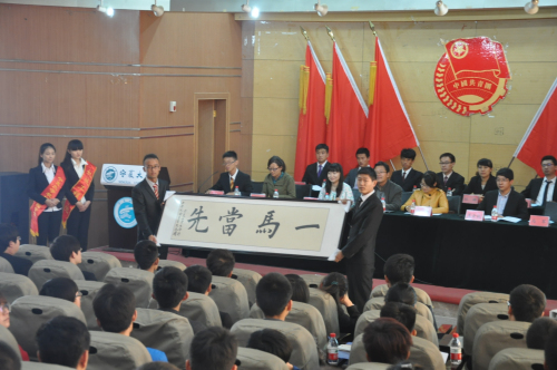 许义泉在致辞中指出,过去的一对于第七届团委学生会来说是艰辛付出的一年,也是蓬勃发展的一年,学生会能够适应时代的变化,成立新媒体运营部,并在传承经典活动的同时打造一批新的如“机械杯”等品牌活动,在引领校园文化,服务同学课余生活方面等做出了应有的贡献。他希望在今后的岁月中,新一届团委学生会成员能够继续坚持“来源于同学,服务于同学”的宗旨,为校园文化的建设和服务同学做出更大的贡献。最后对同学们提出殷切希望,希望广大青年团员能够积极响应团中央号召,做到勤学、修德、明辨、笃实,为实现中华民族的伟大复兴而奋斗。