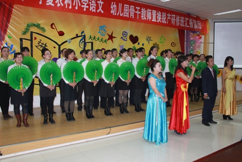 【永利集团304官网新闻中心讯 教育学院 马笑岩 马向前 朱立志】近日,由永利教育学院承担的为期三个月的“国培计划”(2014)宁夏农村小学语文、幼儿园骨干教师置换脱产研修培训正在火热进行。在教育学院的精心组织策划下,265名来自全区各地的农村小学和农村幼儿园的参训教师不仅在培训中学经验、悟精髓,还结合培训内容开展了一场特色文艺汇演。