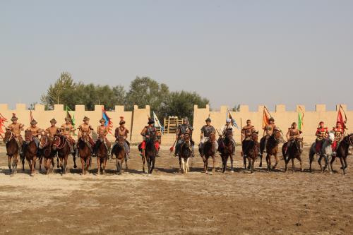 缤纷秋日,秋高气爽、秋色宜人、秋花飘香、秋意绵绵,收获的季节里学院老师们一起共同体会了巍巍贺兰山下,在烽火碉楼的环绕之中,动态的历史画面展现的西夏曾经的辉煌。民俗演绎让大家领略了西夏国的市井生活。西夏风情街、八大寨堡等具有西夏民族历史文化特色的主题项目,让大家在回味历史的同时感受着异域的风土人情;院内的各种花卉争相斗妍,美丽的秋菊更是令人赏心悦目;跑马场上,激烈的《河曲之战》再现了公元1044年,西夏与辽国之间的一场战争,铁骑金戈,两军将士浴血奋战,精湛的骑术,创新的剧情设计让大家为之沉醉;精彩刺激的民间艺人表演,博得了大家的欢呼与惊叹;生态果园里,老师们欢乐采摘,闲庭信步。游园活动中喜悦的笑声、兴奋的喝彩声,声声不断,此起彼伏,处处洋溢着喜庆的气氛。近五个小时的游园活动让老师们愉悦了身心,放松了心情,分享了美丽,也通过自己的劳动收获了累累硕果。