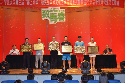 【永利集团304官网新闻中心讯 农学院研究生会 马烨、吴利晓/文孙晔/图】6月5日晚7点,永利集团304官网第三届“塞上研华”研究生学术文化艺术节闭幕式在A区音乐厅成功举行。农学院同学们参加本次学术文化艺术节,并取得了一系列的可喜成绩。在“播撒金种子,放飞青春梦”师生体育活动月篮球赛中,张同刚同学为队长的篮球队球技精湛、默契配合,勇获第二名,充分展示出农学院研究生青春活力的精神风貌;在“FightforaLifetime”研究生英语风采大赛中高媛同学用她激情洋溢的演讲征服了赛场的所有评委,获得一等奖,刘毓璟同学获得三等奖;高媛同学在强手如云的“主舞台光影,持梦想精彩”首届主持人大赛中,模拟主持环节语调抑扬顿挫,临场发挥镇定自若,获得第二名并荣幸担任学校“致青春”欢送2014届毕业研究生文艺晚会的主持。学院在学术文化艺术节期间承办的“挑战最强大脑,征战知识巅峰”百科知识竞赛以及在其他系列活动中的努力与表现也收到了来自学校党政各方面的肯定,被授予永利集团304官网第三届“塞上研华”研究生学术文化艺术节“优秀组织单位”荣誉称号,农学院研究生会主席孙晔、学术部部长高媛因在学术文化节中表现突出,被评为永利集团304官网第三届“塞上研华”研究生学术文化艺术节“优秀个人”。