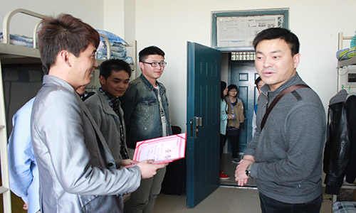 【永利集团304官网新闻中心讯人文学院史文杰】为加强学生公寓管理,努力塑造开放、整洁、文明、健康的生活环境,3月26日中午,人文学院“文明宿舍”颁奖仪式在文科楼学生公寓举办。学院学生工作办公室主任刘杰,2013级年级主任潘巍及团委、学生会主要学生干部和优秀文明宿舍成员参加了此次颁奖仪式。