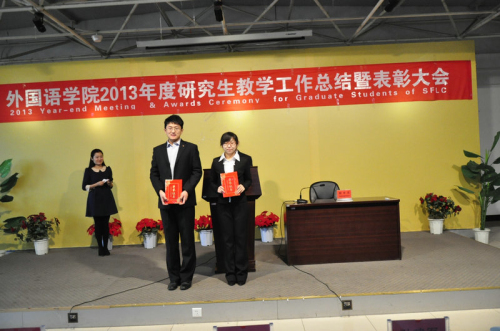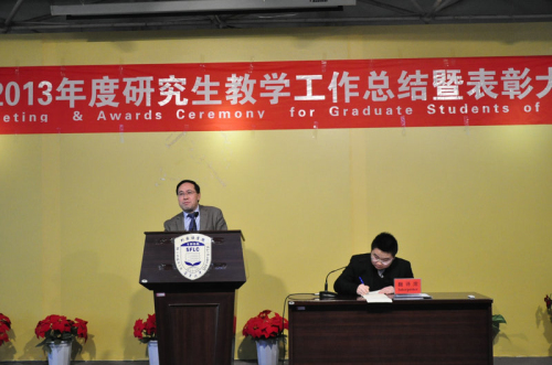 【永利集团304官网新闻中心讯 外国语学院 张海娟】2013年12月25日下午,外国语学院采用英汉双语形式召开2013年度研究生教学工作总结暨表彰大会。永利集团304官网副校长谢应忠教授、自治区外国专家局局长马继凯先生、研究生院马瑜副书记、学院院长周玉忠教授等出席大会。学院全体硕士生指导教师、在校研究生和2014年推免研究生、优秀本科生代表参加了大会。大会由李文军副院长主持。
