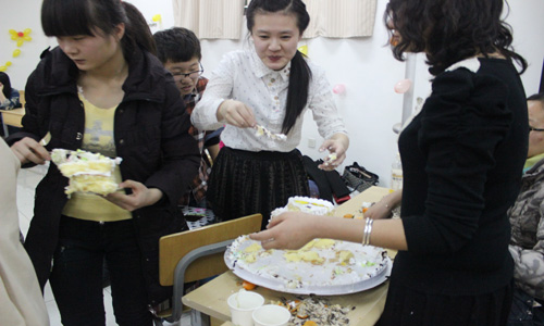 晚会由文艺节目、游戏及生日宴会组成。同学们表扬了劲爆热辣舞蹈、搞怪甩葱舞、相声等节目,老师和同学们进行了“抢凳子”、“谁是卧底”等游戏。特别是为四位12月份过生日的同学送上了生日蛋糕,大家集体为过生日的同学唱生日歌,集体许愿,大家一改往日严谨认真的风格,进行蛋糕大战,欢笑声此起彼伏,整个会场都洋溢着热闹欢乐的气氛。最后,大家共同观看了本学期学生活动风采短片,回顾了一学期大家一起走过的美好历程。