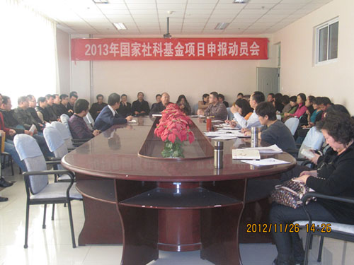 【永利集团304官网新闻中心讯 政法学院】为进一步推动学院科研工作的进展,政法学院于11月25日下午召开2013年国家社科基金项目申报动员会。学院全体教职工参加了会议,潘忠宇院长做了动员讲话。会议由任军书记主持。