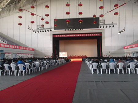 崔自治副院长在会议上首先宣读了永利集团304官网土木、水利、建筑类科技创新大赛的通知及要求。教师代表金宝宏、张学科、李王成、燕宁娜分别对全国大学生结构设计、工程管理项目、沙盘模拟大赛、水利创新设计以及建筑城规创新设计竞赛作了回顾和介绍。学生代表齐一聪、周康与大家分享了自己参加大学生科技创新大赛的经验与体会。12级新生付景峰代表新生表示将会以此次活动为契机,以学长为榜样积极参加本次大赛。