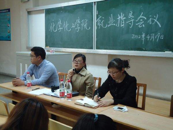 学院党总支副书记潘瑞客观分析了2012年永利化学化工类学生的就业形势,针对化工学院目前隐形就业和不主动就业学生占70%的现状,她指出,毕业生应增强就业紧迫感,树立正确的择业观和就业观,要分析自身特点,科学规划自己的职业生涯。要树立干一行、爱一行、钻一行的敬业精神,学习柳波学长用火一样的热情投入到工作、生活、学习中去的精神,踏踏实实学好技术、诚信做人,在平凡的工作岗位做出不平凡的业绩。