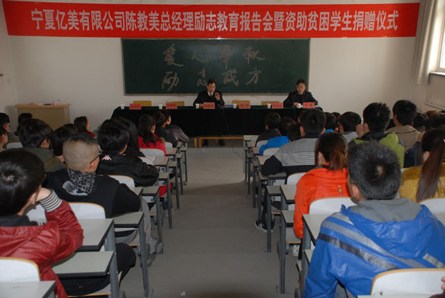 捐赠仪式上,赵新浩副总经理介绍了宁夏亿美生物科技有限公司的发展情况,他表示捐赠贫困学生是公司在校企合作建设基础上奉献爱心的重要内容。