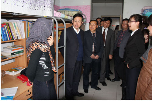 启动仪式结束后,赵利宁副书记一行人在学院领导的陪同下参观了学院六号公寓楼的“生命先锋之家”活动室,一边听取学院领导对党建工作的汇报,一边观摩了预备党员转正述责考评。还走访了六号公寓楼的党员标兵宿舍,与同学们亲切交谈,鼓励同学们努力学习,积极向上,争做光荣的“金种子”。