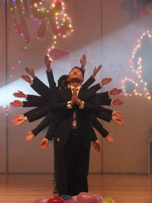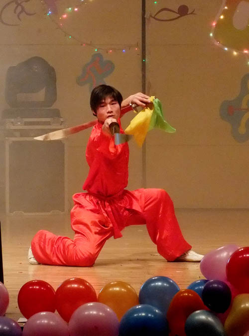 颁奖结束,师生们表演了精彩的文艺节目。大合唱激荡人心;相声、小品幽默风趣;现代舞激情奔放,活力四射;传统武术刀、剑、长鞭精彩纷呈,把晚会推向高潮。