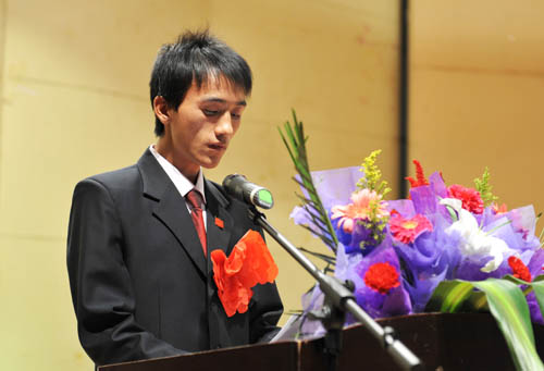 “品牌学生”是化工学院学生自己选出的优秀学生代表。他们学习优秀、勤勉奋进、勇于探索、工作创新、自强不息、孝老爱亲,面对学习上的困难能激流勇进,面对生活上的困难能从容应对,面对学校和同学的需要能顾大局、识大体、做奉献,他们具有当代大学生宝贵的精神,是当代大学生可亲、可敬、可信、可学的榜样。方姗,这个自称为“幸运儿”的女孩,用勤奋和努力寻找到了通往成功的钥匙;雷光亮,这个从大山走出的小伙子用“钉子钉出了学生会主席”;王建星,一个“虽然不能选择出身,但可以把握命运”的人,带着父母去上学,用行动诠释着“爱”;高新华,是时刻践行温家宝总理“此时,此地,此身”寄语的学生干部;火宏龙,用行动证明“集体荣誉高于天”;孙琳,用自己的肩膀为家庭分忧,用勤奋和努力为父母争光;孙永刚,虽然从小失去父亲,家庭生活贫困,但坚持心中的选择,努力拼搏,获得了精彩的大学;阮超,为了温暖他的老师和同学,带领班、团和党支部干部,勤奋工作,取得了突出的成绩。还有吴倩倩、官菊芳、王磊、朱福明……12个“品牌学生”有着12段精彩的人生,报告里所讲的只是浓缩了的他们大学生活的一小部分,最动人者莫过于真情,最感人者莫过于事实,他们用自己的事迹感染了场下的每一个人,博得了阵阵掌声。