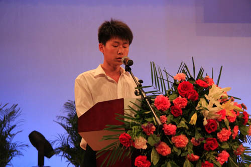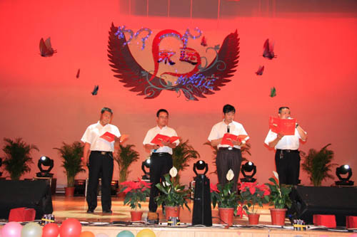 54名预备党员庄严肃穆的入党宣誓,给党的90岁的生日献礼。会上对“庆祝建党90周年”、“十佳标兵”、“优秀毕业生”等进行了表彰。