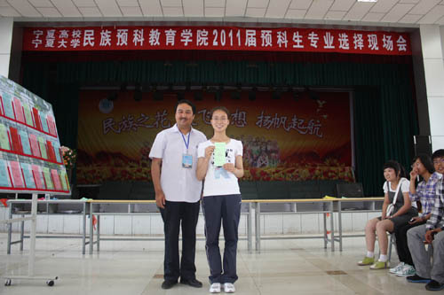 【永利集团304官网新闻中心讯 马占俊/文图】6月14日上午,民族预科教育学院2011届预科生专业选择工作在南校区大学生活动中心圆满结束,校纪检委副书记杜国华到场监督,宁夏医科大学学生处处长马晓东和招办主任马金鱼到场观摩。2011届1261名结业生参加了专业选择。