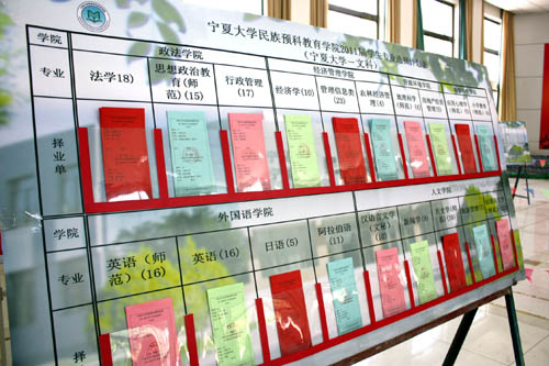 本次参加专业选择的预科生来自永利集团304官网、西北农林科技大学、淮海工学院、宁夏医科大学等九所高校,根据各高校关于预科生专业选择办法的规定,这1261名预科生均需根据一学年来的综合成绩排名依次选择专业。本着公开、公平、公正的原则,由学院党政领导牵头,学院专门成立2011届结业生专业选择工作领导小组,前期广泛宣传,由专人制作展板和择业单,严格把关,杜绝作弊,并邀请学校纪检部门领导和委培院校领导亲临现场监督,从而保证了此项工作的公平性和透明度。