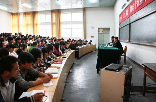 赵利宁副书记首先对中国五千年华夏史进行了回顾,对灿烂辉煌的过去进行了高度的概括总结,进而对我国“十一五”期间的巨大成就进行了精辟的论述。他还就经济结构调整、刺激内需、壮大出口、要素投入、行业素质等问题发表了自己的见解。他结合”十二五"规划的要求和任务,畅谈了我国科学发展的重要性和紧迫性,指出时代赋予了当代大学生的重要责任,作为一名新时期的大学生要不辜负国家的期望。赵利宁副书记幽默风趣的语言博得了在场学生阵阵热烈的掌声。