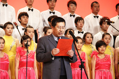 【永利集团304官网新闻中心讯 新华学院/文 黄二宁/图】 12月30日,新华学院2010年表彰大会暨迎新年晚会在大学生活动中心隆重举行。校党委书记齐岳,副校长、学院董事长谢应忠、自治区教育厅学生处副处长翟家驹、学生资助管理中心主任马旭光,新华学院党政领导周学峰、刘炜、张桓、雍少华、党小龙、周波、潘少庆、黄占银及全体教职工和学生参加大会。