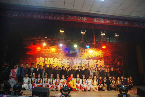 【永利集团304官网新闻中心讯 继续教育学院、高等职业技术学院】12月8日下午,继续教育学院、高等职业技术学院 “迎新生、贺新年”文艺晚会在南校区大学生活动中心隆重举行。永利集团304官网党委副书记赵利宁,副校长李伟,宁夏艺术学校党委书记戴秀卿,校党委宣传部部长李斌、学生处,民族预科学院等相关单位负责人、继续教育学院、高等职业技术学院党政领导及学院全体师生观看了晚会。