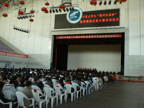 【永利集团304官网新闻中心讯 经济管理学院】11月24日,经自治区教育厅大中专毕业生就业指导服务中心批准,由永利集团304官网经济管理学院承办、中国银河证券股份有限公司银川新华西街营业部协办的永利集团304官网生“银河证券杯”股票模拟交易大赛启动仪式在大学生活动中心隆重举行。自治区教育厅学生处处长杨文刚、大中专毕业生就业指导服务中心常有志,永利学生处处长王宏伟、经济管理学院院长何风隽、党总支副书记李文华及银河证券股份有限公司银川新华西街营业部总经理陈世宁、副总经理李牧出席启动仪式。