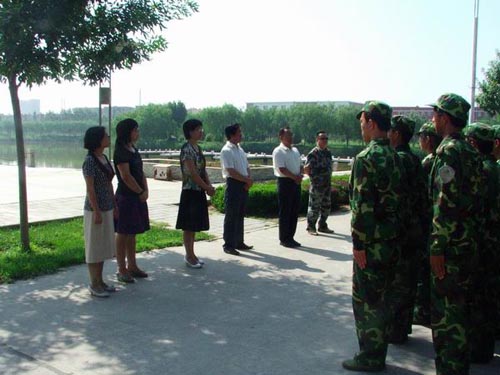 7月20日上午九点,金波湖畔的主路上,三营二连的战士们还在刻苦训练。这时,教官吹哨集合,倒让战士们有些不知所然。此时,教育学院党总支书记鲁晋带领其他院领导们正从不远处走来,慰问参加军训的一百二十余名学生。一切尽在不言中,同学们热烈的掌声足以表达心中的喜悦。院领导的贴心话语让大家心情澎湃。“大家表现的很好,为了集体尽自己最大的能力,我希望在今后的几天中,同学们能继续坚持,争创佳绩。我们领导、老师在此敬候佳音。”鲁书记的发言让同学们振奋不已。之后,学院领导们将购置的酸奶分发到每位同学手中。