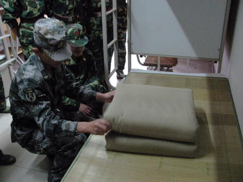 教官为我们示范叠“军被”