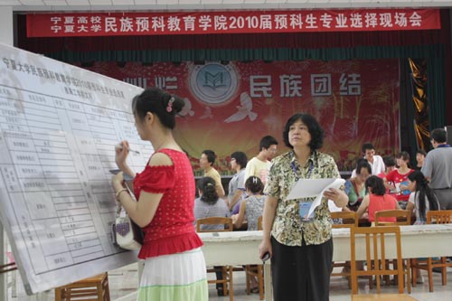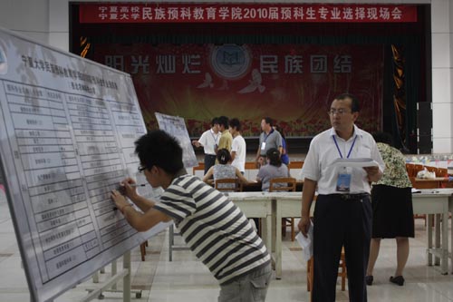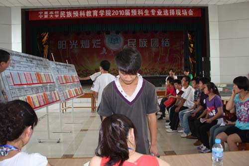 【永利集团304官网新闻中心讯 尹军利 王学宏/ 文马占俊/图】6月25日上午,来自永利集团304官网、宁夏医科大学、宁夏师范学院、西安电子科技大学、西北农林科技大学、淮海工学院、盐城师范学院、盐城工学院八所院校的1231名少数民族预科生在南校区大学生活动中心顺利确定本科专业,民族预科教育学院2010届预科生专业选择工作圆满结束。