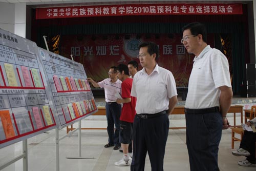 校党委副书记赵利宁,学生处处长王宏伟、副处长王志霄亲临现场指导工作。民族预科教育学院领导郝育兰、王俊、田富军、石慧刚、马玉玲、马军、尹军利参加专业选择工作。