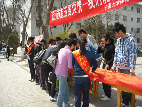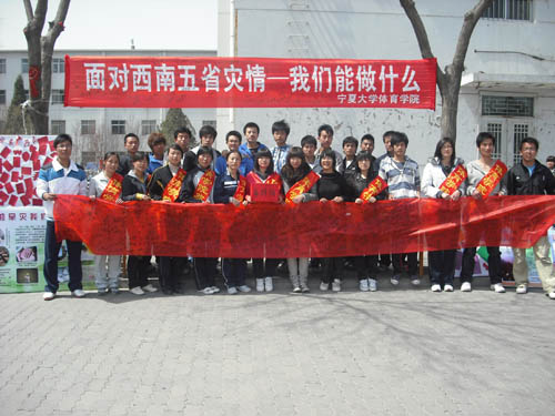 【永利集团304官网新闻中心讯 体育学院】近期,我国西南部遭受百年不遇的旱灾,体育学院学子时刻关注着灾情的变化,4月14日上午,学院团委、学生会在校本部B区举行了以“心系西南旱情、倾注爱心之水”为主题的募捐活动,同学们在“面对西南灾区,我们能做什么”的条幅上签满了名字。此次活动共筹集捐款800余元。善款虽少,但它却倾注了同学们的爱,体现了体院学子心想灾区、情系灾民的爱心。