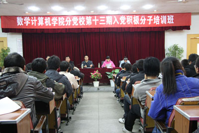 院党总支副书记戴兴安作了题为《保持共产党员先进性必须坚定党的理想信念教育》的主题报告。他指出,坚信中国共产党的正确领导是历史的必然选择,并详实的例子介绍了在中国共产党的正确领导下,中华民族发生了翻天覆地的变化,使同学们充分认识到了中国共产党的先进性。戴书记要求,入党积极分子要树立正确意识,不做有损党的形象的事,不说有损党的团结的话,胸怀共产主义远大理想目标,勇敢担负历史的重任,以高昂的革命热情和顽强的拼搏意识,刻苦学习科学文化知识,努力做到德智体美的全面发展,为共产主义事业做出贡献!