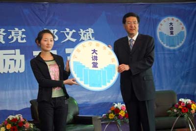 新华学院党委副书记纳殿文宣布“新华大讲堂”正式启动,王宏伟常务副院长向“新华大讲堂”致辞,并授“新华大讲堂”堂徽。