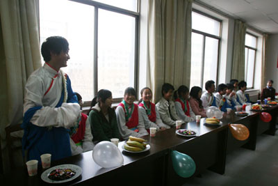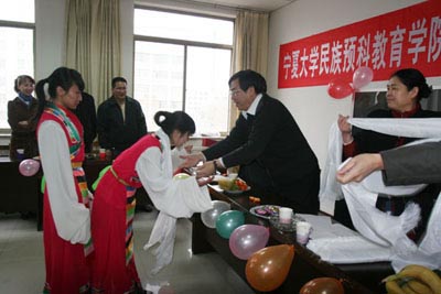 永利集团304官网非常重视少数民族学生并尊重其民族习俗。为使民族预科教育学院的藏族学生在异地度过一个温馨、愉快的节日。当日下午,民族预科教育学院为全院26名藏族学生举行了欢度2009藏历新年座谈联欢会。副校长王燕昌,学校相关部门负责人及民族预科教育学院党总支书记郝育兰、院长王俊和有关老师出席了座谈会。