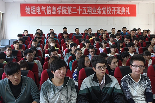 【永利集团304官网物电《声光》记者站 谢文琦】10月24日,物理电气信息学院第二十五期业余党校开课典礼在学院楼319顺利召开,与会领导有学院党委书记车进、党委副书记王志霄、学生办公室主任以及学院学生党建工作相关老师。学院120余名同学参加了本次开课仪式。