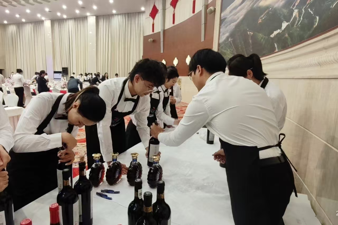为向中国——中亚合作论坛欢迎晚宴及贺兰山东麓葡萄酒品鉴会活动提供专业的侍酒服务,润泽书院葡萄酒与园艺研究生党支部、本科生党支部于10月23日至24日集中进行侍酒礼仪集训,35名党员、发展对象、积极分子参与本次活动。同学们发挥了专业细致周到的侍酒服务水平,保证活动各环节井然有序,出色的完成了任务,展现出永利学子的有理想、敢担当、能吃苦、肯奋斗的新时代精神,同时传达了永利青年人执着专注、精益求精、一丝不苟、追求卓越的职业素养精神,为此次活动顺利开展贡献了青年力量,受到活动主办方的一致好评。