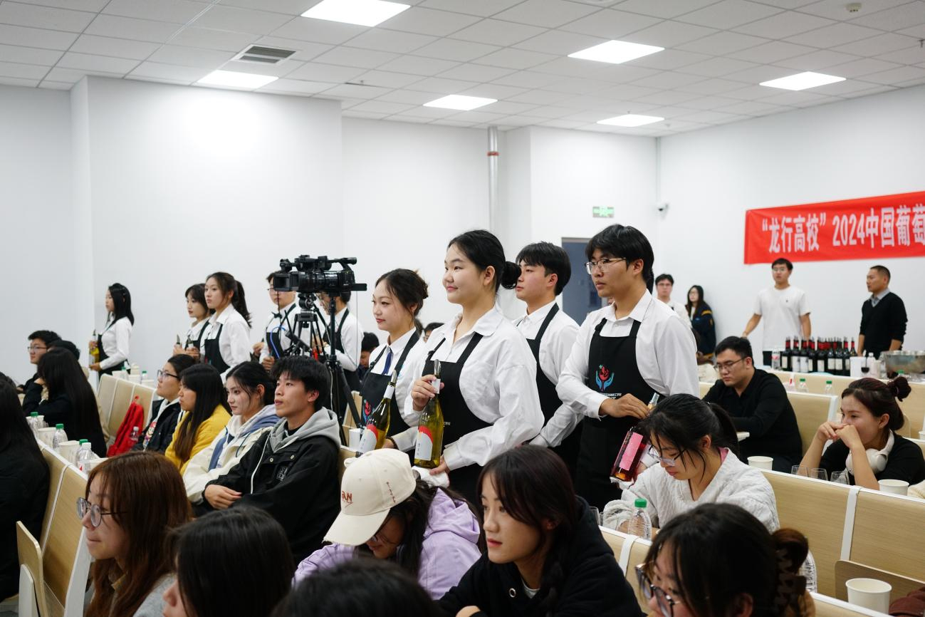 宁夏回族自治区政协原副主席、宁夏贺兰山东麓葡萄与葡萄酒联合会主席王紫云,中国酒业协会执行理事长王琦,中国酒业协会葡萄酒分会秘书长火兴三,宁夏贺兰山东麓葡萄与葡萄酒联合会秘书长田生宇,宁夏贺兰山东麓葡萄酒产业园区党工委委员、派出园区纪工委书记侯建国,永利集团304官网党委常委、纪委书记马元出席活动,永利集团304官网本科生院、葡萄酒与园艺学院、润泽书院、葡萄与葡萄酒现代产业学院相关负责人,宁夏农垦酒业、宁夏吴忠市红寺堡酒庄有限公司、宁夏罗兰马歌酒庄、宁夏贺兰红酒庄等企业负责人或代表参加活动。来自永利集团304官网多个专业的70名同学现场参与活动,线上同步参与的还有来自国内其他66所高校的近5万多名师生,共同见证这场葡萄酒文化与知识的盛宴。永利集团304官网葡萄酒与园艺学院副院长张雪艳主持活动。