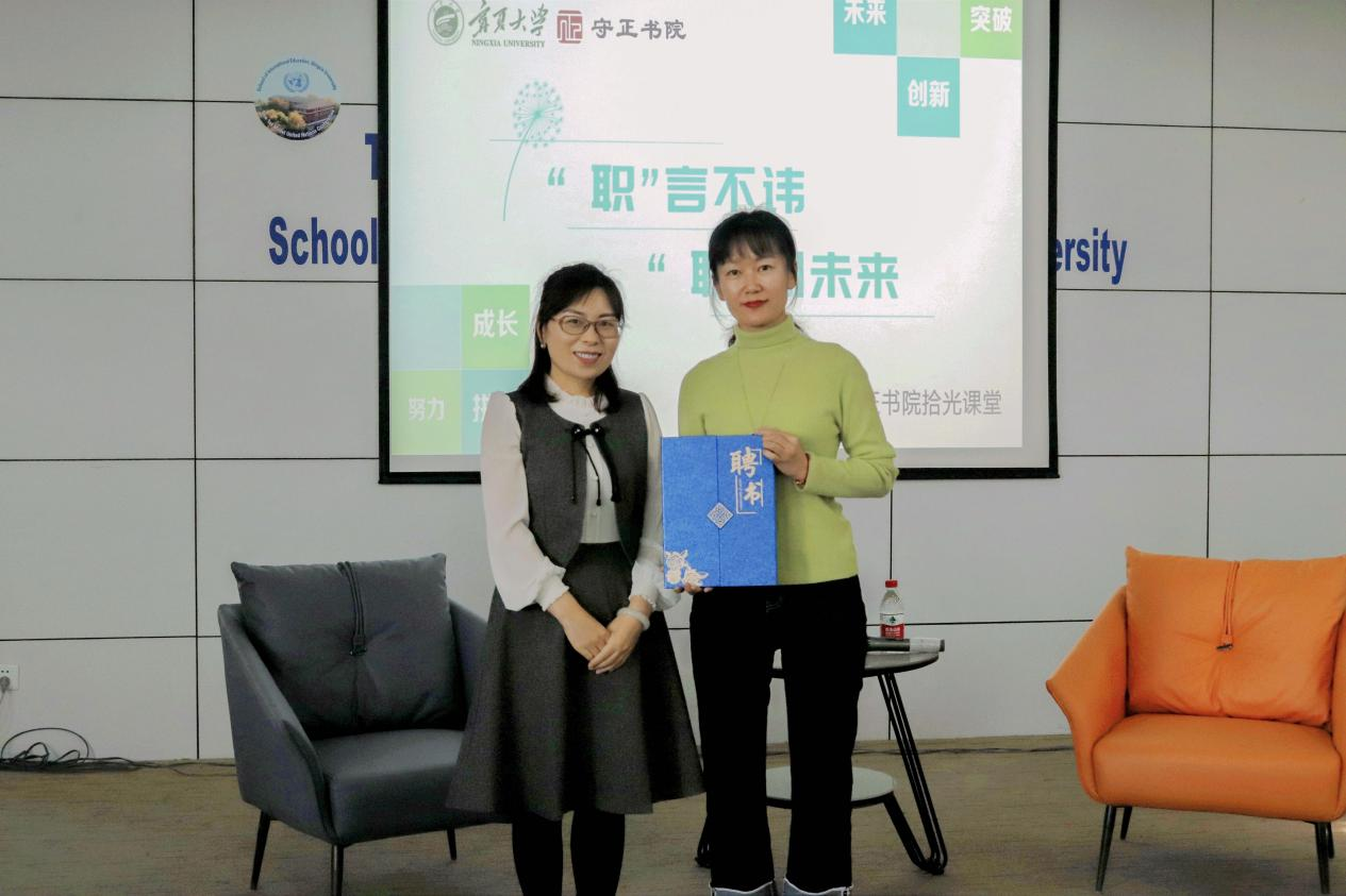 访谈开始前,永利集团304官网守正书院党委书记、院长闫蓉为锁梅老师颁发了守正书院成长导师聘书。锁梅老师在交流中毫无保留地分享了个人成长、教育教学、班级管理及职业发展方面的宝贵经验。