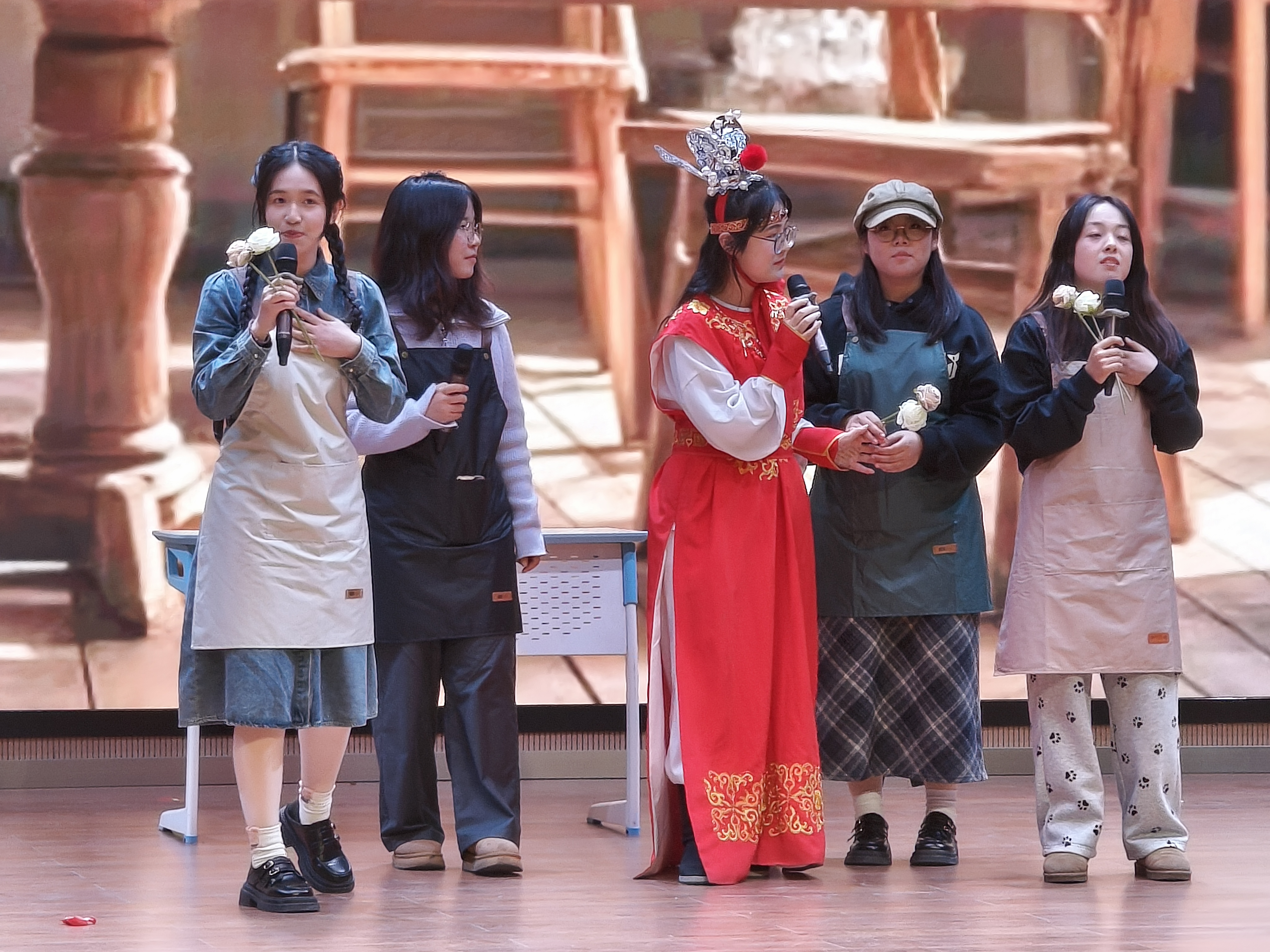 23级英语卓越教师培养班演绎的《梦回红尘,现代绮梦》舞台剧,将经典《红楼梦》人物融入现代生活,展现女性多样风采与力量。