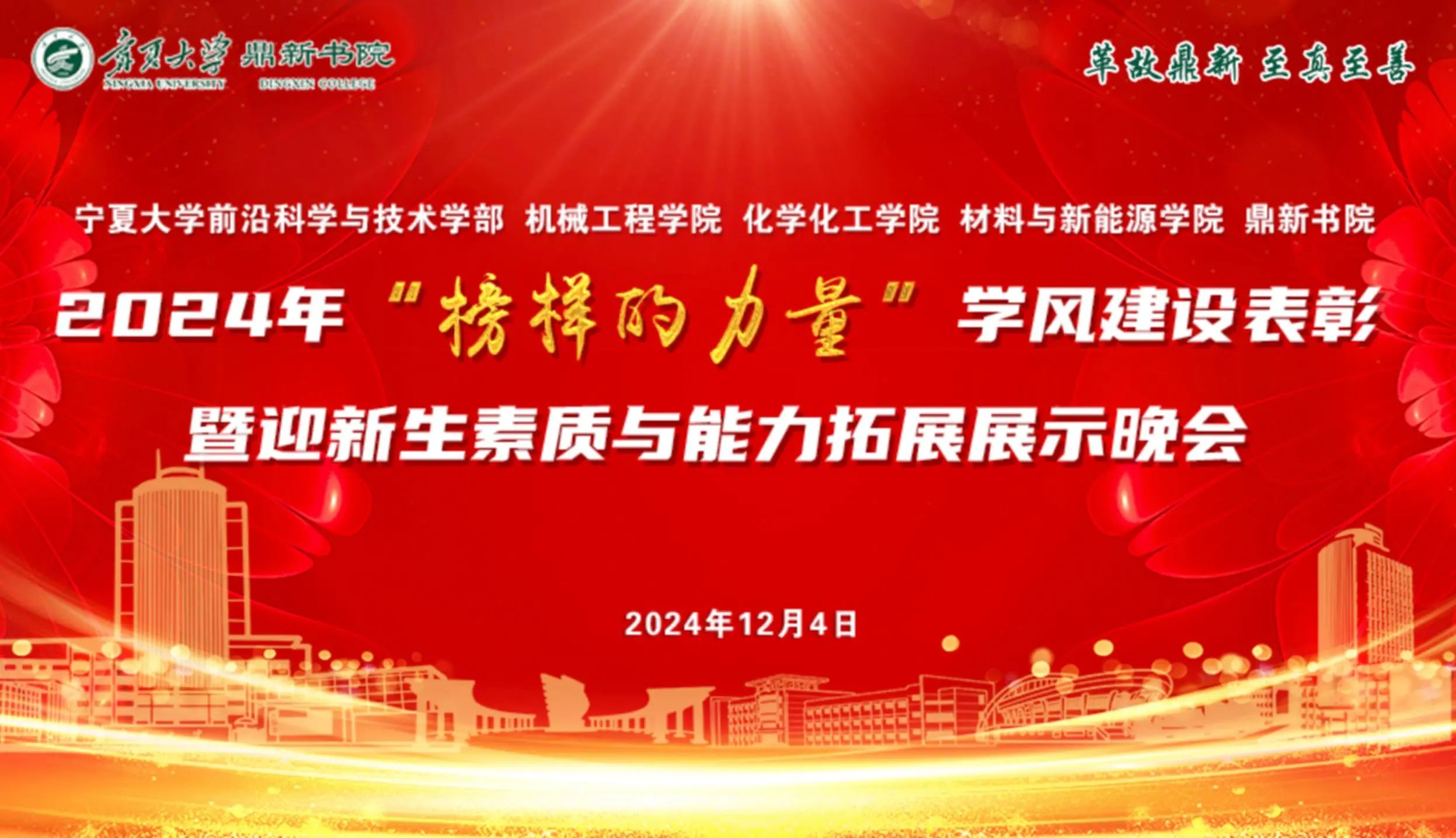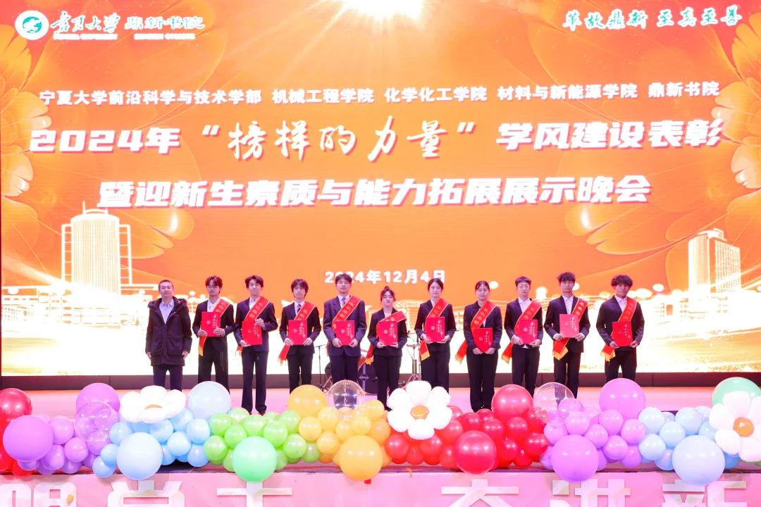 【永利集团304官网新闻中心讯 鼎新书院】12月4日,永利集团304官网前沿科学与技术学部、机械工程学院、化学化工学院、材料与新能源学院、鼎新书院2024年“榜样的力量”学风建设表彰暨迎新生素质与能力拓展展示晚会在永利集团304官网文萃校区大学生活动中心隆重举办。学部、学院和书院的主要领导和相关负责人,学院班主任代表,书院全体辅导员、在校本科生、研究生参加晚会。