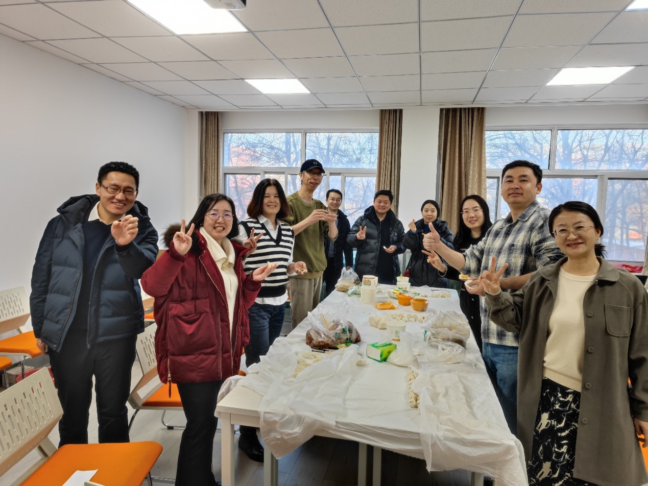 活动当天上午,学院教职工早早来到活动现场,大家围坐在一起,在热闹温馨的氛围中开始了包饺子活动。面粉、馅料、擀面杖等物品一应俱全,各系教职工分工明确,和面、擀皮、包饺子有条不紊地进行。经验丰富的老师们手法熟练,包出的饺子形状美观,而一些年轻教师虽然手法笨拙,但在前辈们的悉心指导下,也逐渐包出了一个个饱满的“新年饺”。许多老师还不忘现场“比拼”创意,包出了各种造型独特的饺子,引得大家笑声不断。饺子煮熟后,大家围坐在餐桌旁共同品尝劳动的成果。一盘盘热腾腾的饺子象征着团圆与幸福,每个人都在这份简单却温暖的仪式感中感受到了新年的喜悦与浓浓的人情味。