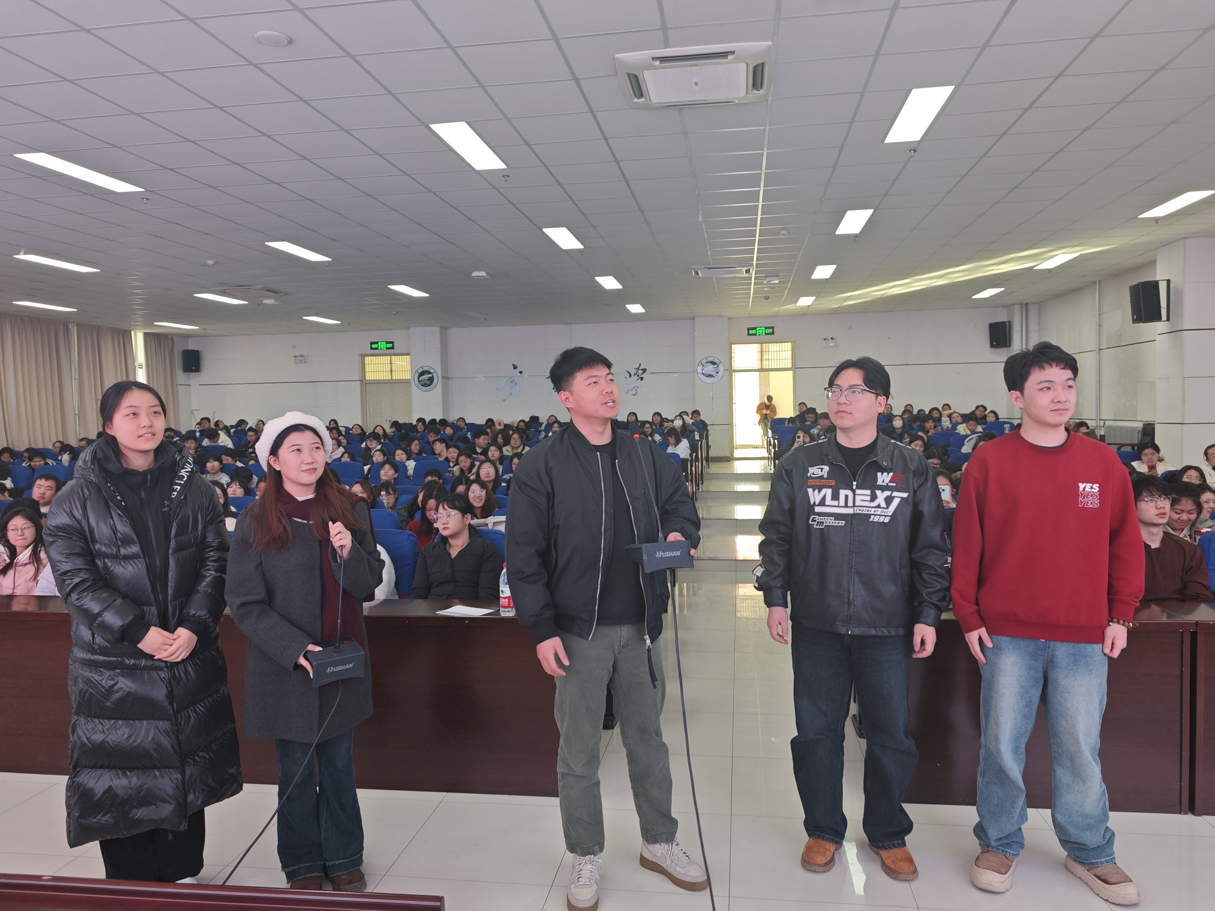 张静涛从播音主持专业角度讲述“表达中的呼吸支撑”,现场教授了胸腹联合式呼吸法。重点讲述了“表达的外部技巧”:声调、停连、重音、语气、节奏,并现场示范、练习。