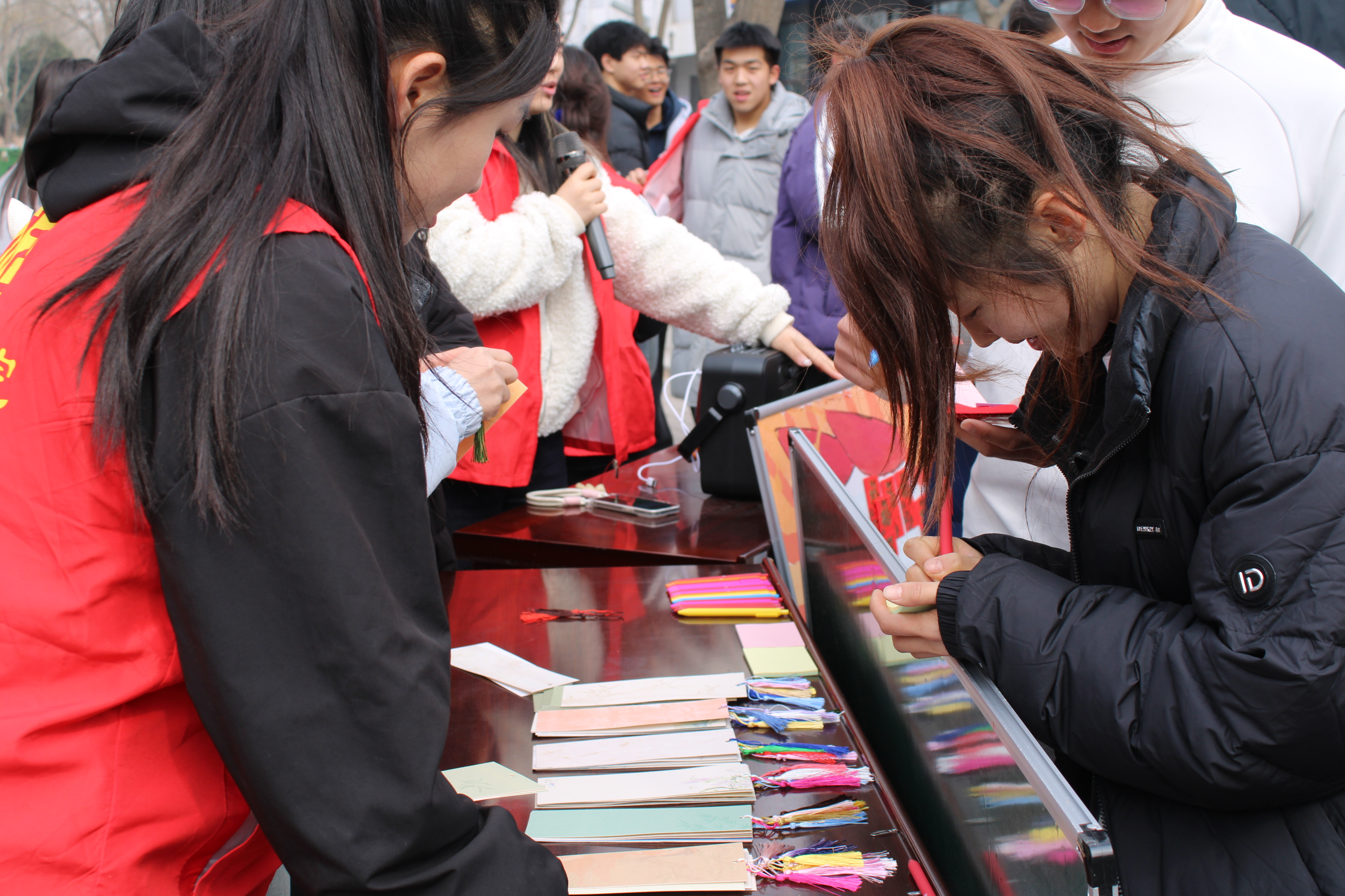 “盲盒+志愿”的形式,吸引了同学们的目光。现场同学通过抽取内含“吹响‘锋’号”、“聆听‘锋’音”、“传递‘锋’爱”任务的红包盲盒,分享志愿故事,领取雷锋书签。一位同学动情讲述道:“雷锋是我的学习榜样,他的点滴善举让我感动,我也愿用行动传递温暖。”