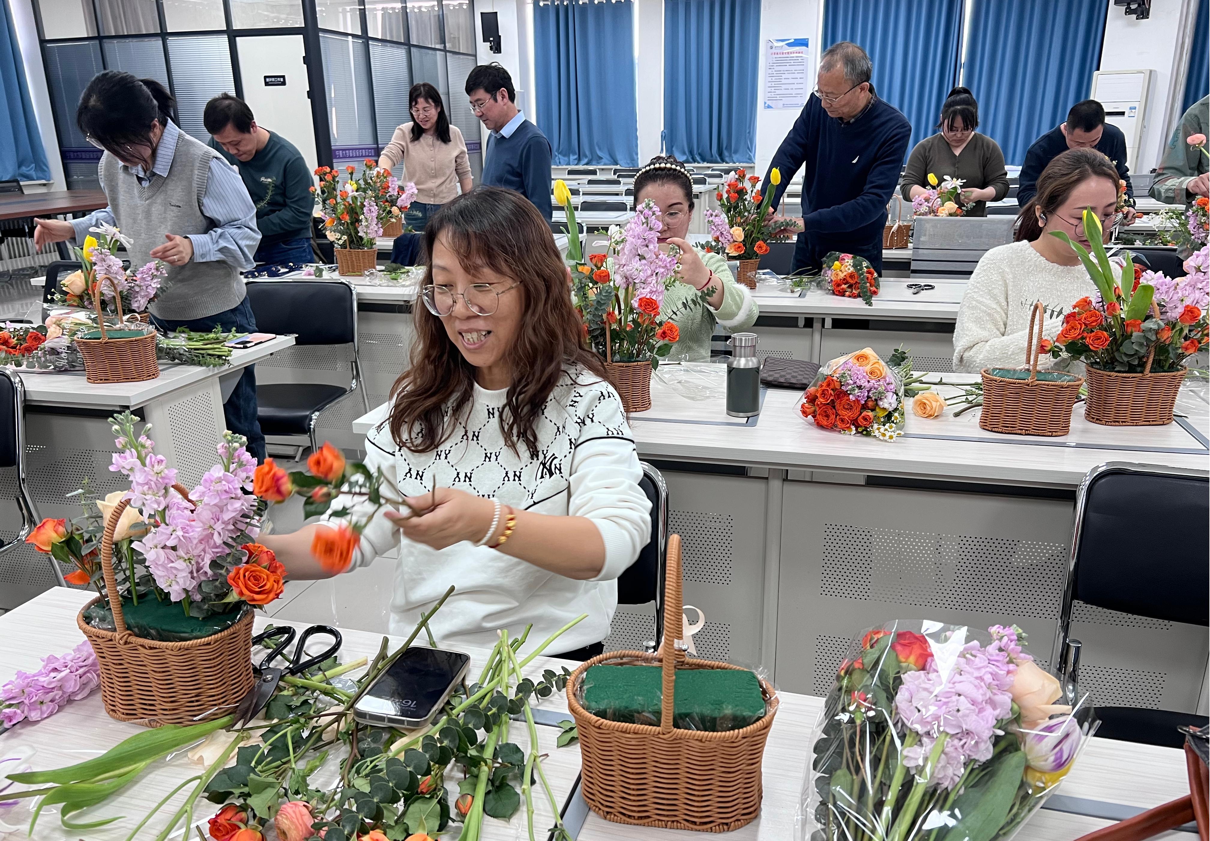 【永利集团304官网新闻中心讯 信息工程学院】为庆祝第115个“三八”国际劳动妇女节,丰富教职工精神文化生活,3月7日下午,信息工程学院分工会精心策划的“指尖生春色,匠心绽芳华”主题插花沙龙活动在学院举办。全院教师齐聚一堂,以花为媒、以艺会友,在花香与欢笑中共度春日美好时光。