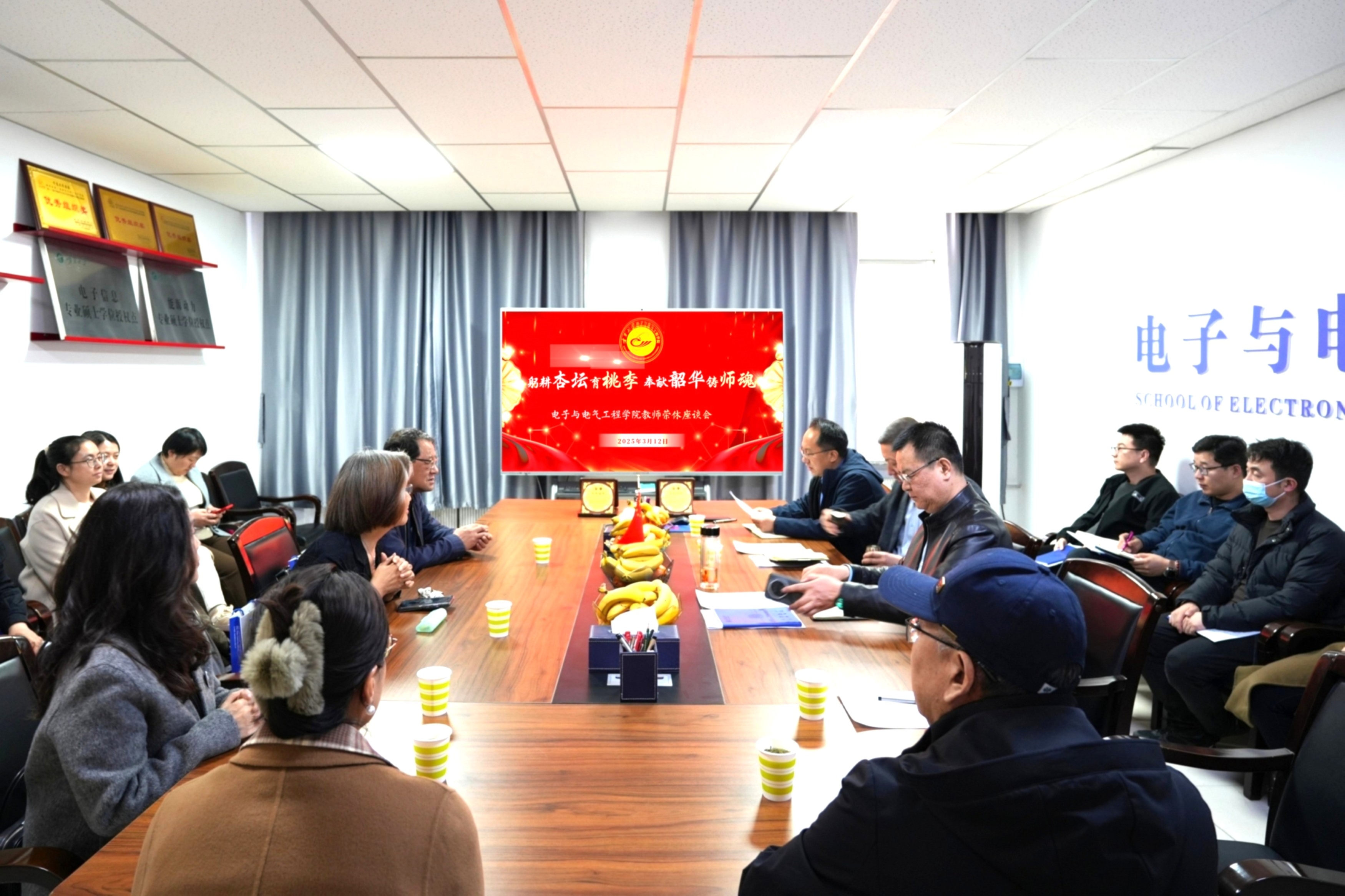 【永利集团304官网新闻中心讯 电子与电气工程学院】岁月如歌敬风华,桃李不言谱新章。3月12日下午,电子与电气工程学院在怀远校区德言楼106会议室为汪西原、汤全武两位教授举办荣休座谈会,会议由副院长郭中华主持。