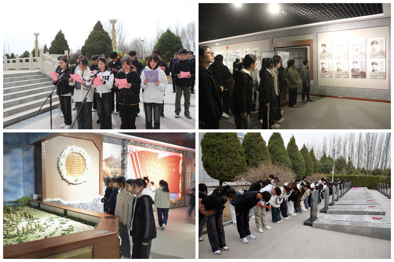 祭奠仪式中,入党积极分子代表深情朗诵诗歌《百年回眸》。激昂的朗诵声响彻陵园上空,一句句饱含深情的话语,回溯党的百年奋斗征程,表达了对革命先烈的敬仰以及对党和国家的热爱,展现了当代青年传承红色精神、勇担时代使命的决心。朗诵结束后,师生们有序参观了烈士纪念馆,馆内陈列着的斑驳钢枪、泛黄的家书、破损的军装等革命文物,生动再现了革命先烈们为了国家独立、民族尊严和人民幸福,抛头颅、洒热血的英勇事迹。参观完纪念馆,全体人员整齐列队,怀着崇敬之心,缓缓走到墓碑前,向全体烈士三鞠躬以此表达对先烈们的最高敬意和深切怀念。