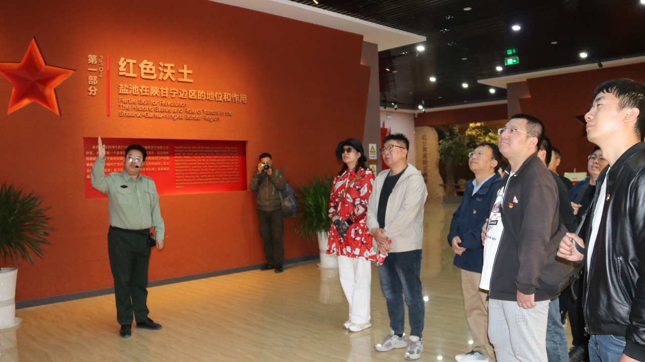 在盐池革命纪念馆,在讲解员的带领下大家走进那段烽火连天的历史,泛黄的文献、锈迹斑斑的武器、复原的窑洞场景,鲜活再现了陕甘宁边区军民团结抗战的壮举。在“红色盐池”主题展厅,大家驻足聆听革命先烈浴血奋战的故事,凝视着墙上“保卫边区”的标语,深刻体会到革命胜利的来之不易。在宁夏长城历史博物馆和铸牢中华民族共同体意识馆,通过沙盘模型、多媒体演示和文物陈列,大家系统了解长城作为“中华民族精神”的历史价值。