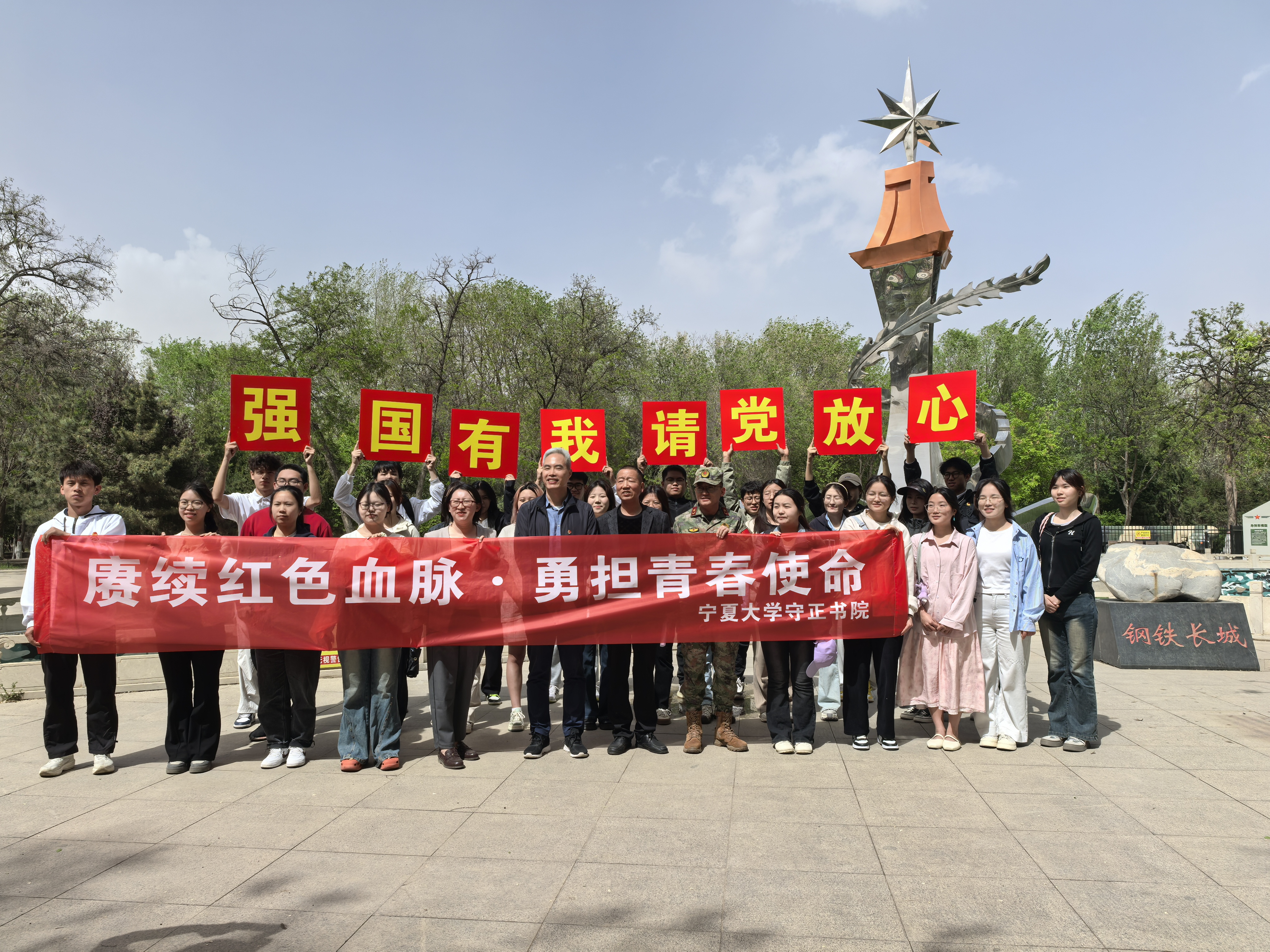 【永利集团304官网新闻中心讯 守正书院】为纪念“五四运动”106周年,弘扬“爱国、进步、民主、科学”的五四精神,激励书院青年传承红色基因、勇担时代使命,守正书院团委于4月30日下午在八一公园举行“赓续红色血脉 勇担青春使命”主题团日活动暨研学活动。守正书院党委副书记何文栋、西夏区八一公园管理处主任梁雷,团学研各部门学生代表参加,活动由守正书院团委书记陶雪梅主持。