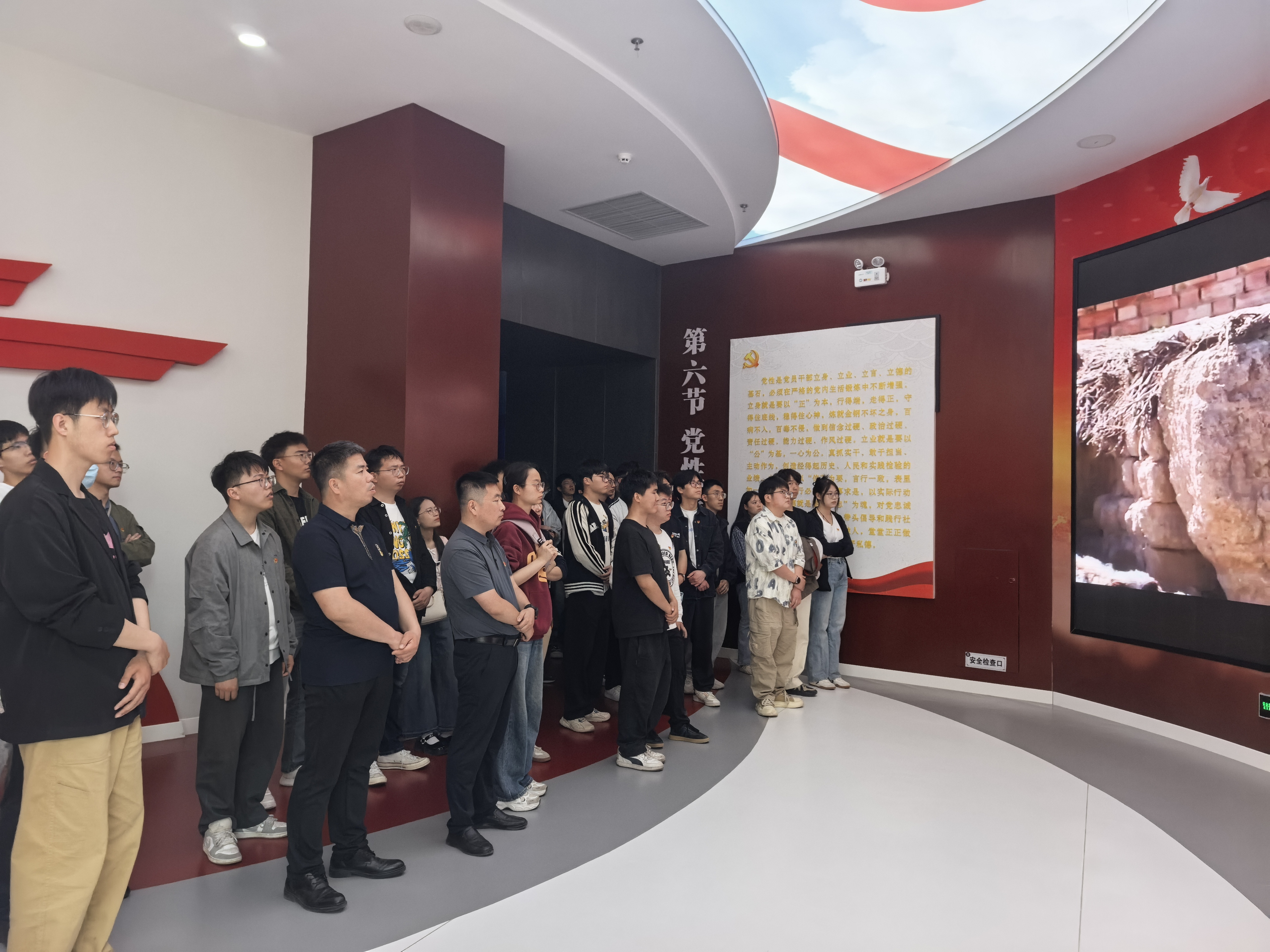 在警示教育基地,师生党员依次听取了“决策篇”“法规篇”“警示篇”“正气篇”“家风篇”“宁夏篇”六个展区的讲解。通过沉浸式展厅、多媒体展示等手段,深入了解了党的十八大以来反腐败斗争取得的重大成就;通过观看违纪违法典型案例和忏悔语录,接受了一次全面而深刻的警示教育、思想淬炼和精神洗礼。