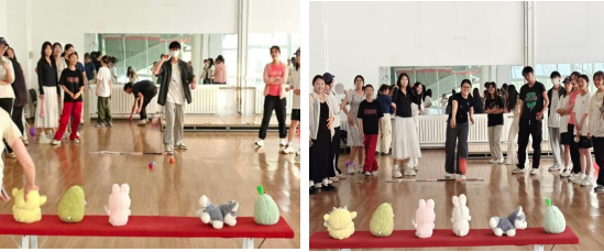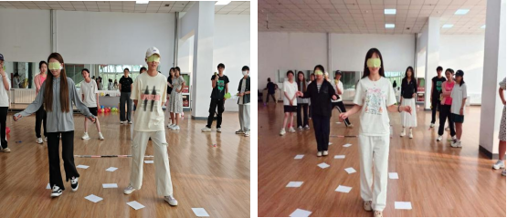 活动以创意融合心理成长,设计了“情绪释放—信任构建—自我突破”三个环节,层层深入,气氛热烈。在“踩气球大战”环节,参与者将充满学业压力、人际关系烦恼的标签气球系于腿上,在奔跑追逐中踩爆气球,爆裂声与欢笑声交织,抽象的心理压力转化为可视化的宣泄过程;“扫雷行动”中,参与者两人一组,一人蒙眼扮演“探索者”,一人语言引导化身“导航员”,在布满障碍物的“雷区”中协同前行,从最初的试探性指挥到逐渐默契的精准指引,同学们在肢体受限的情境下,通过高频次语言互动建立起对同伴的深度信任;参与者手持沙包,瞄准标有“自卑”“拖延”“焦虑”等负面情绪的立式靶标全力投掷,击打动作不仅是肢体力量的释放,更是通过具身认知原理,在行为层面建立对负面情绪的对抗性认知,帮助大家从“被情绪困扰”转向“主动管理情绪”。