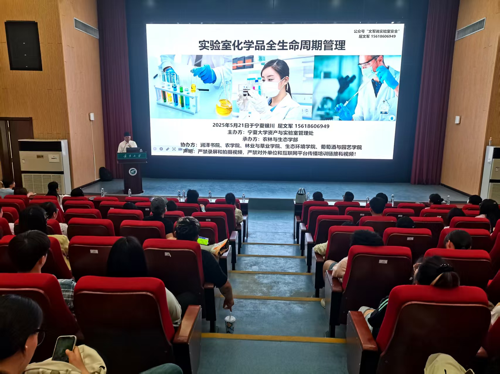 【永利集团304官网新闻中心讯 农林与生态学部】为提升实验室安全管理水平,强化师生危化品安全防范意识与应急处置能力,5月21日下午,资产与实验室管理处联合农林与生态学部在贺兰山校区科技楼一楼报告厅,特邀全国检验检测认证职业教育集团实验室安全专委会专家屈文军,围绕实验室危险化学品安全管理,开展专题培训及应急演练活动,资产与实验室管理处、学部、四个学院实验室负责人、研究生代表200余人参加。活动由学部党委副书记虎建华主持。