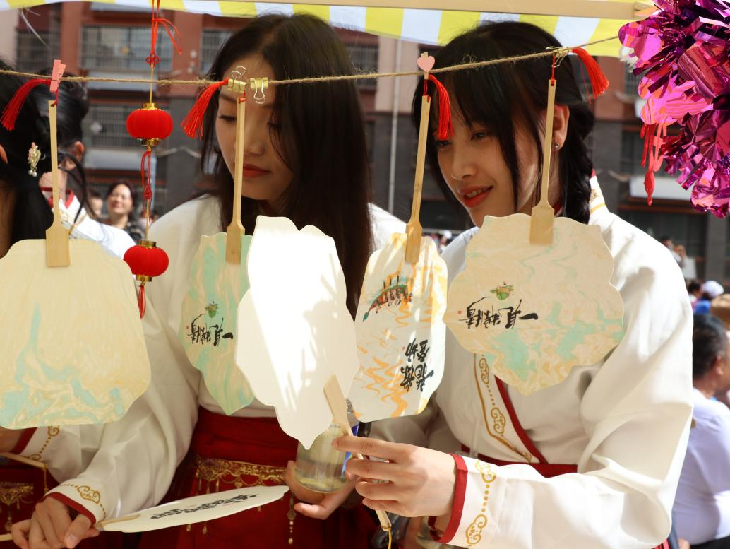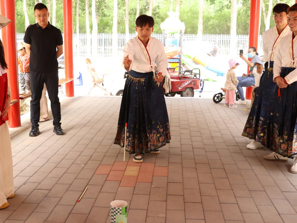 活动上,留学生们身着马面裙,迅速融入其中,成为一道亮丽的风景线。在肖像画体验区,画师巧手生花,在水墨交融间为留学生们勾勒出栩栩如生的肖像,让他们领略中国传统绘画的魅力;投壶活动区域欢声笑语不断,留学生们手持箭矢,兴趣盎然地投掷,在一次次尝试中感受古代礼仪文化的独特趣味;而非遗漆扇制作与香囊制作区域更是备受瞩目,非遗传承人详细讲解制作工艺,留学生们亲手制作出精美的漆扇与散发药香的香囊,深入了解传统技艺背后的文化传承。