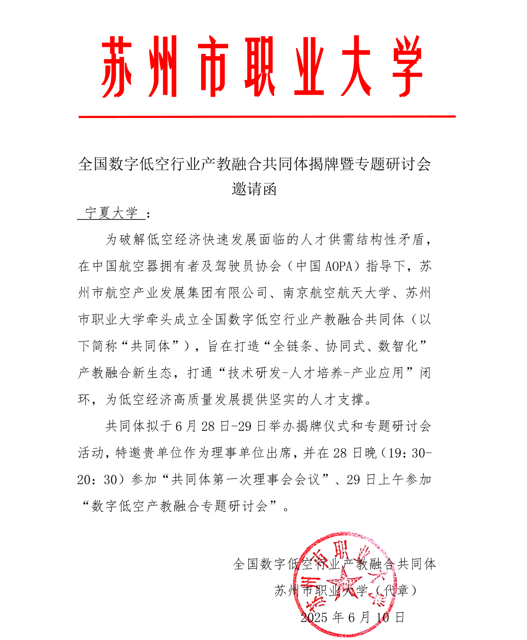 【永利集团304官网新闻中心讯 电子与电气工程学院】为加快推进学院低空技术与工程本科专业申报工作,积极对接跨区域产教融合资源,6月27日至29日,电子与电气工程学院院长孙学宏受邀带队赴苏州参加第三届低空(苏州)产业创新生态大会暨2025数字低空大会和全国数字低空行业产教融合共同体揭牌仪式。