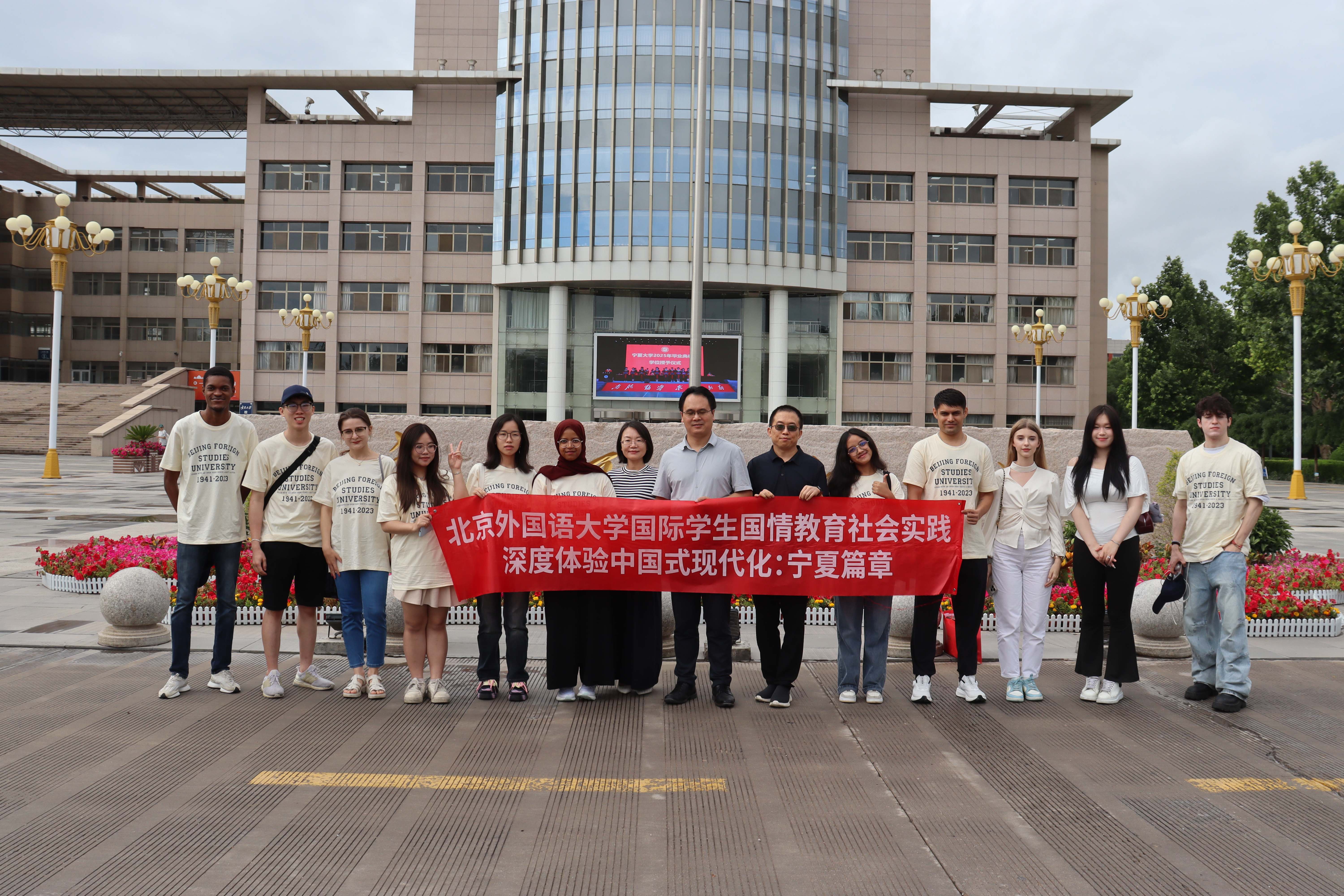 讲座结束后,双方进行了自由交流。大家畅所欲言,分享在不同城市学习生活的感受,交流文化差异带来的趣事与挑战,现场气氛热烈融洽。交流结束后,两校师生在贺兰山校区草坪前合影留念。